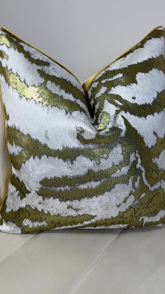 Elegant 22x22 Metallic Gold and Silver Abstract Pillow Cover