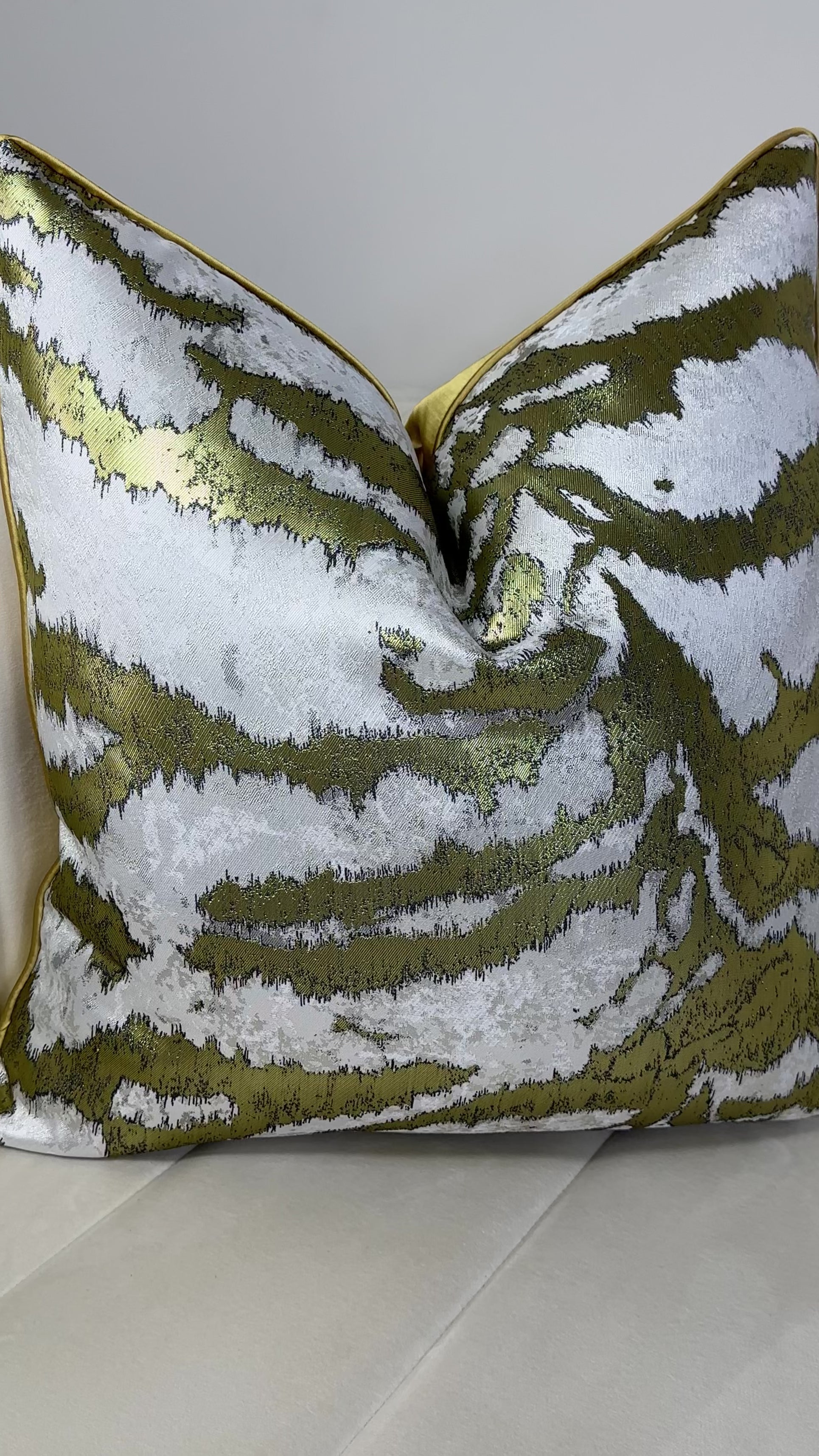 Elevate your home decor with this stunning 22x22 pillow cover. Featuring a striking abstract design in shades of metallic gold and silver, this cover adds a touch of opulence to any space. Crafted from high-quality fabric, it has a soft texture with a subtle sheen, perfect for creating a sophisticated and modern look.